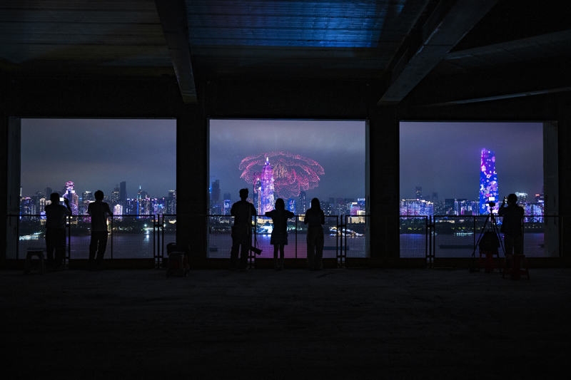 9月12日,市民观看无人机表演。