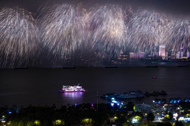 9月12日拍摄的烟花表演。