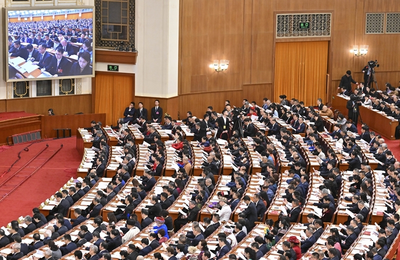 3月9日,十四届全国人大四次会议在北京人民大会堂举行第二次全体会议。